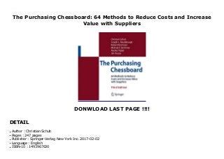 Read Online The Purchasing Chessboard: 64 Methods to Reduce Costs and Increase Value with Suppliers Hardcover